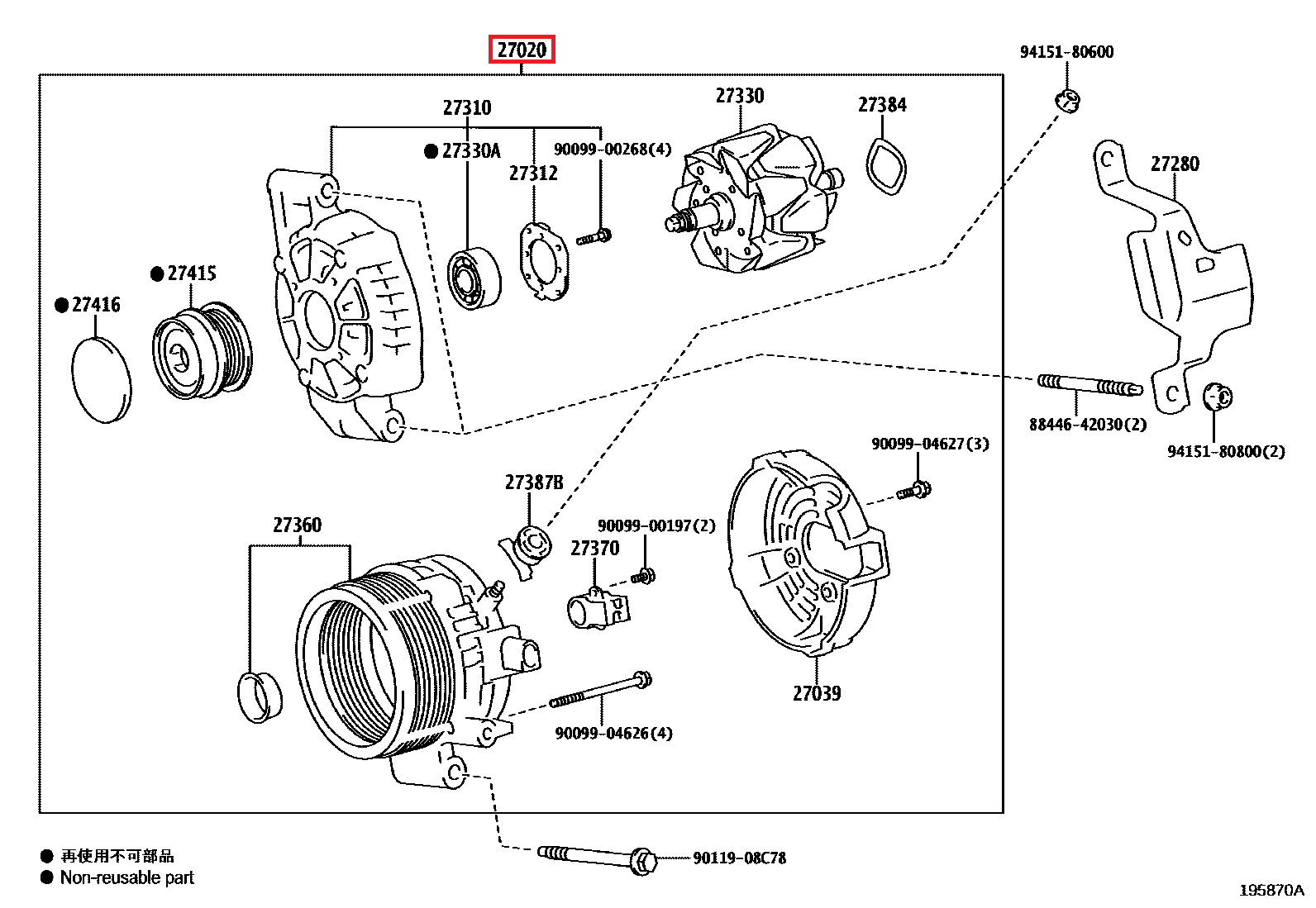 27060-18010 Alternateur 12V 130A GR Yaris GEN1 (27020)