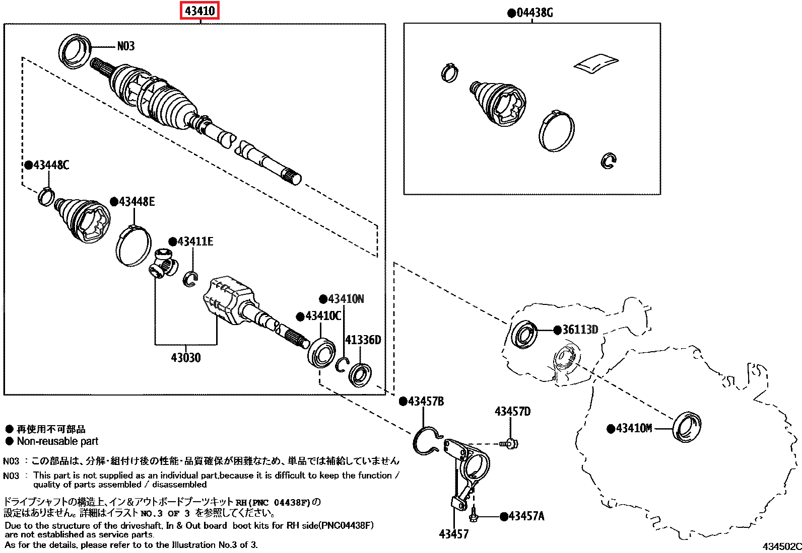 43410-52420 Cardan transmission complète avant droit AVD GR Yaris GEN1 (43410)