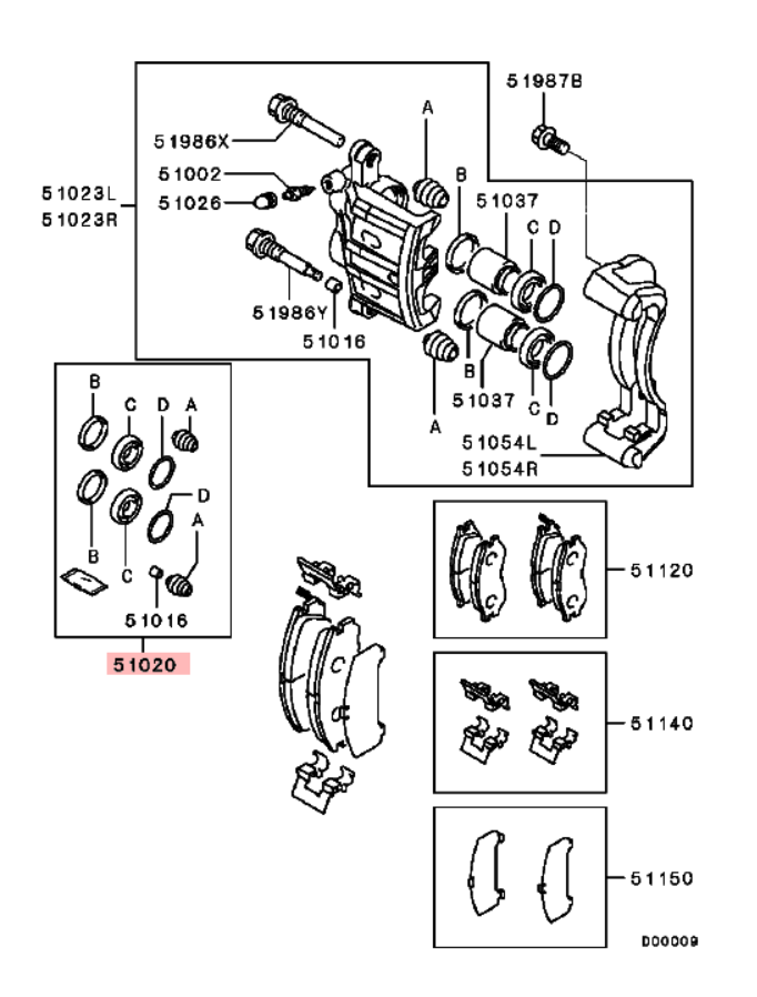 Kit de joints pour étrier de frein avant ‘terre’ (2 pistons) de Lancer Evo 4 5 6 7 8 9.