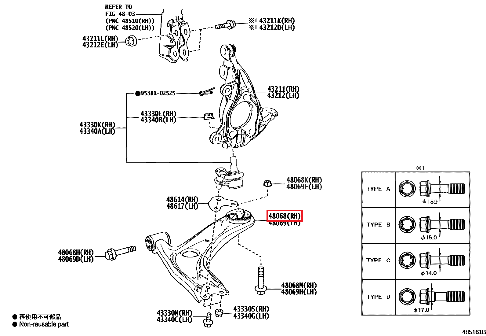48068-52140 Triangle inférieur avant droit AVD GR Yaris (48068)