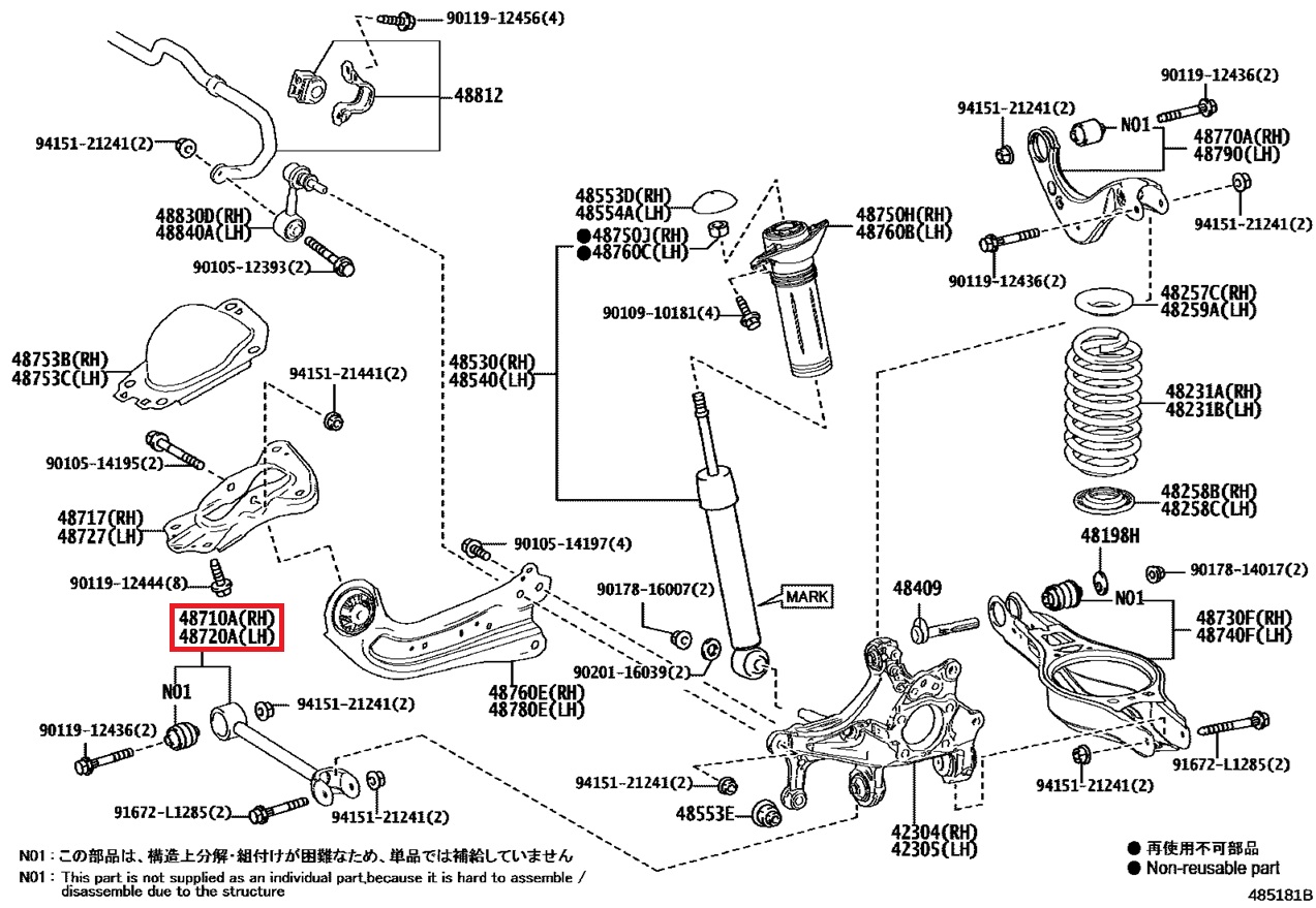 48710-52090 Bras suspension inférieur arrière gauche et droit ARG ARD GR Yaris (48710A 48720A)