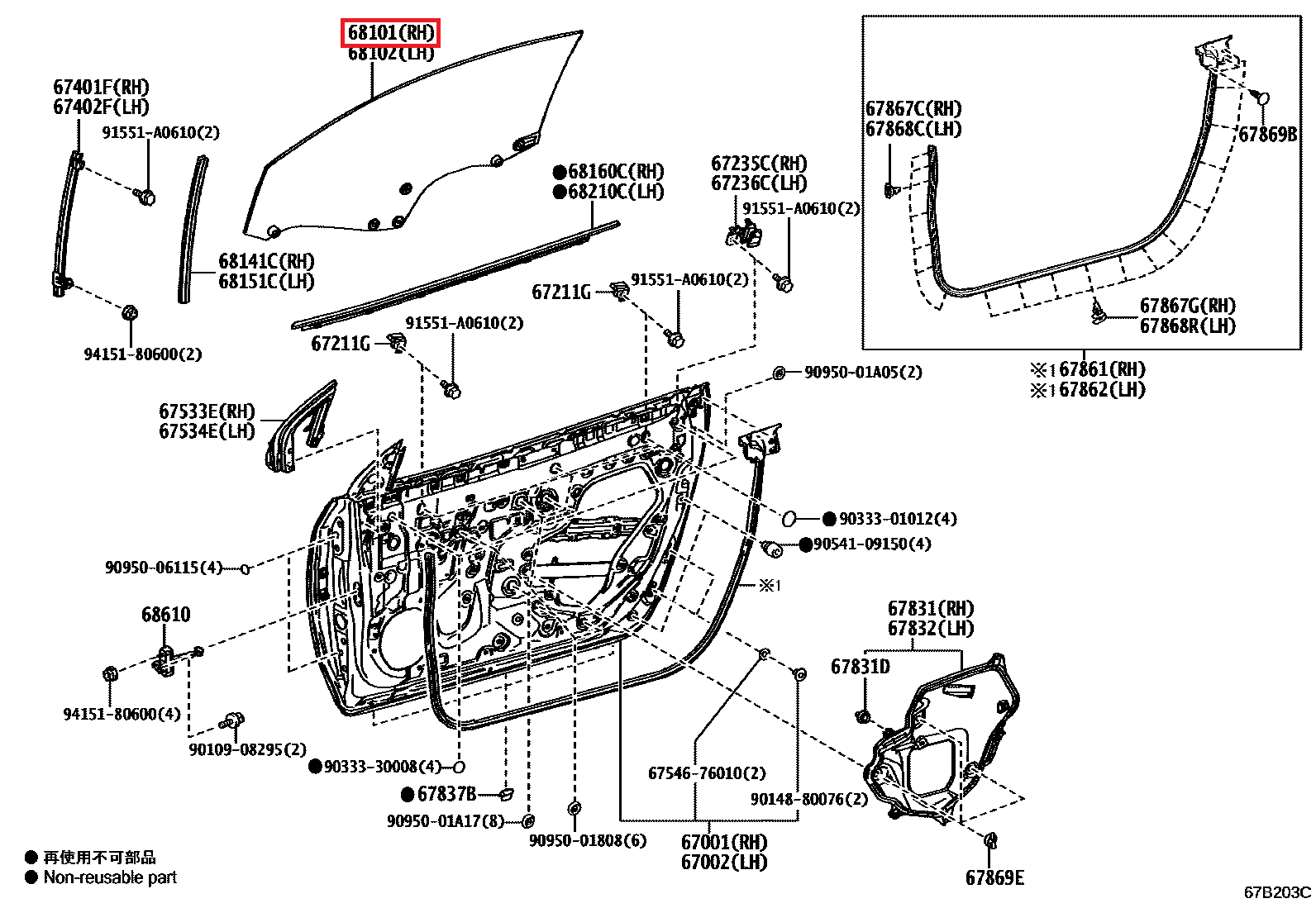 68101-52231 Vitre porte droite GR Yaris (68101)