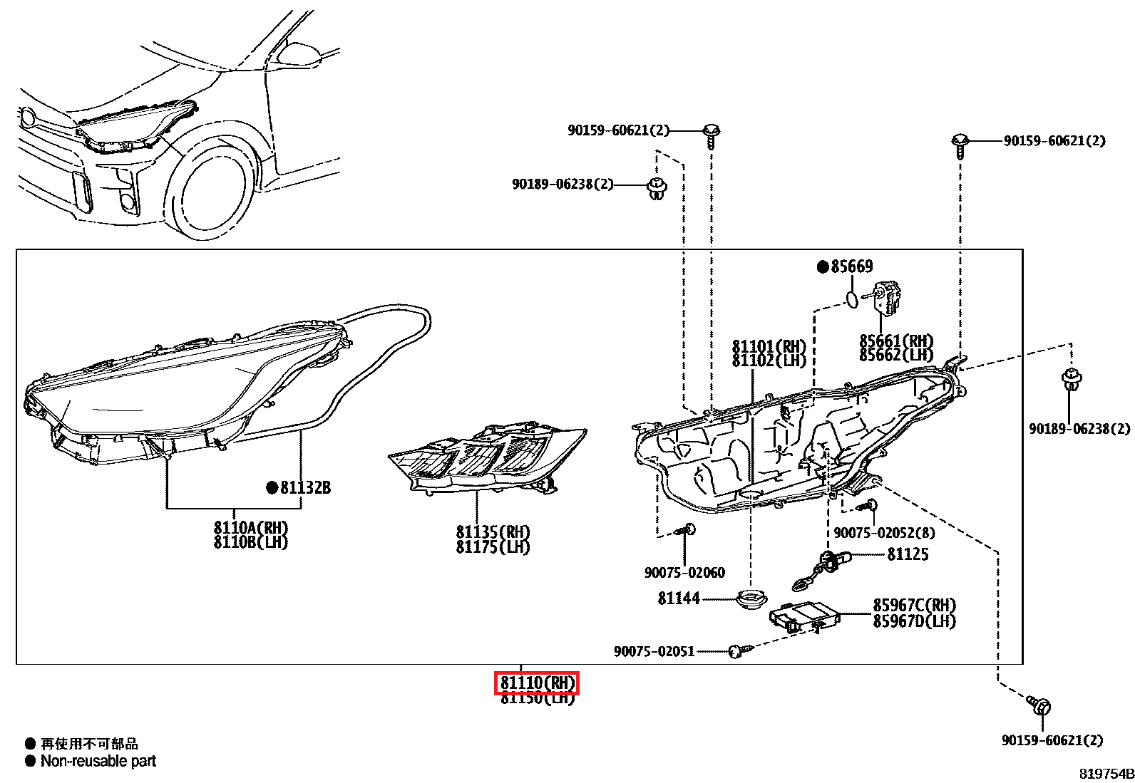 81110-52N62 Phare avant droit AVD complet LHD GR Yaris (81110)