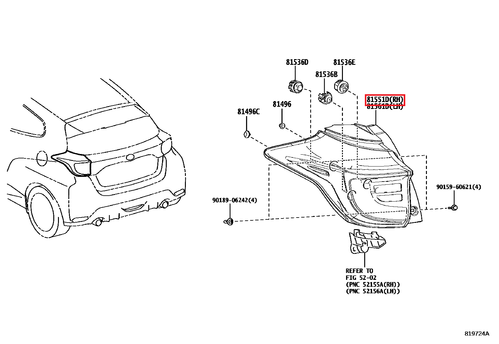 81551-K0020 Feu arrière droit ARD GR Yaris GEN1 (81551D)