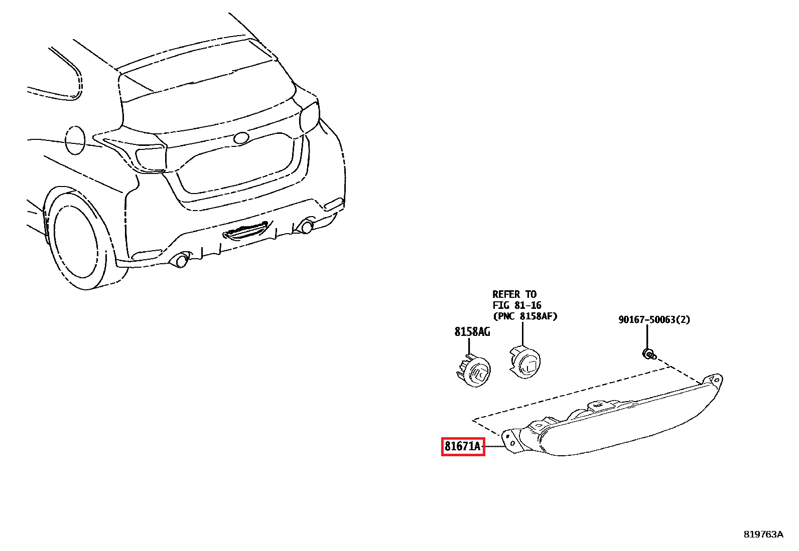 81581-K0130 Feu central pare choc arrière GR Yaris GEN1 (81671A)