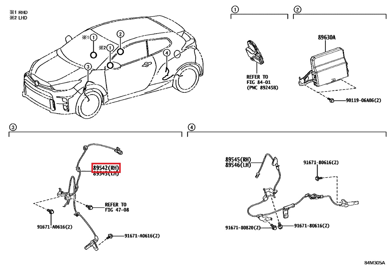 Capteur ABS vitesse de roue avant droit de GR Yaris GEN1 et 2.