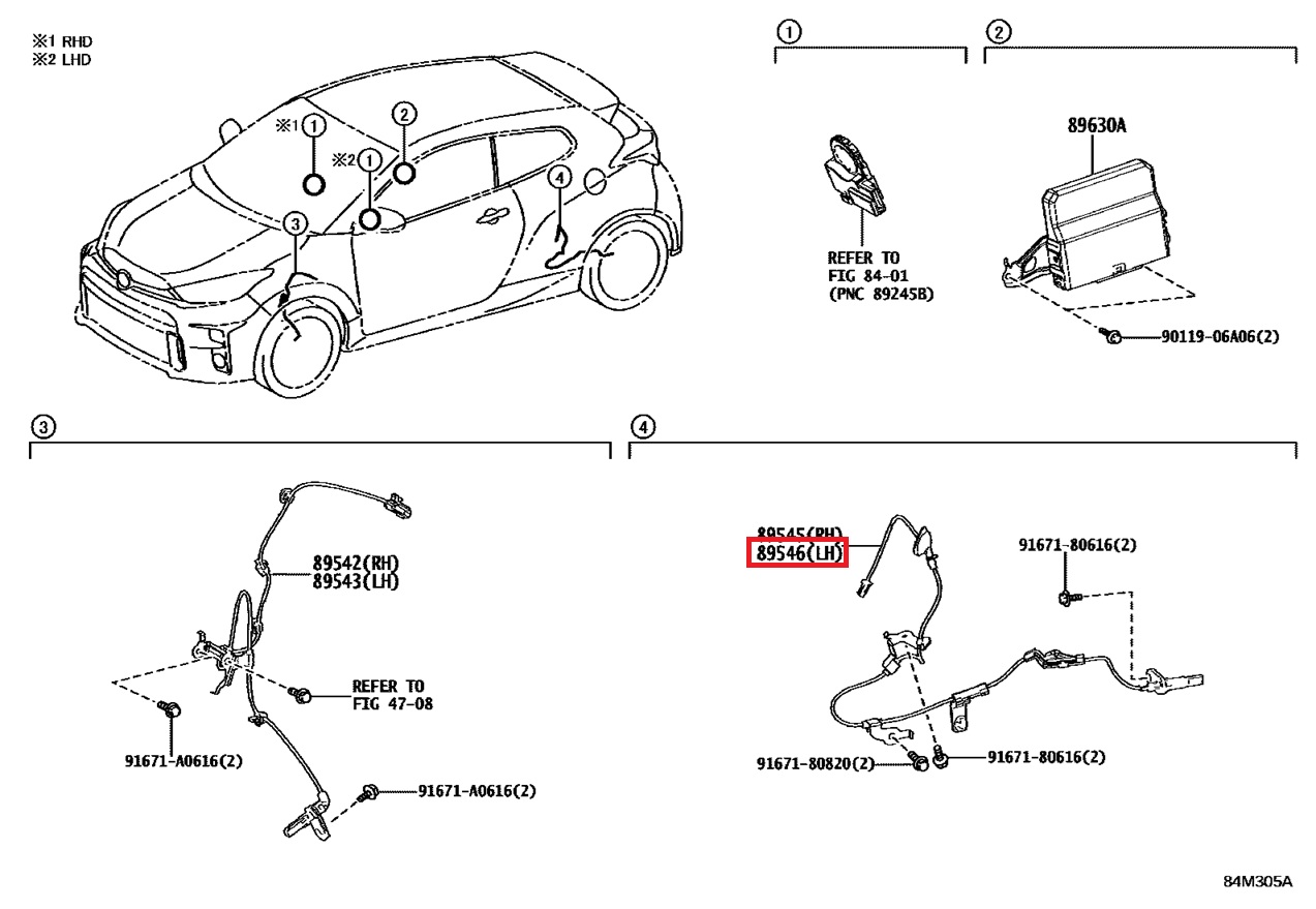 Capteur ABS vitesse de roue arrière gauche de GR Yaris GEN1 et 2.