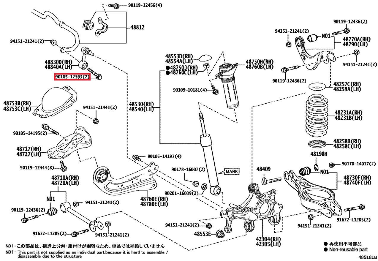 90105-12393 Vis biellette barre stabilisatrice arrière GR Yaris