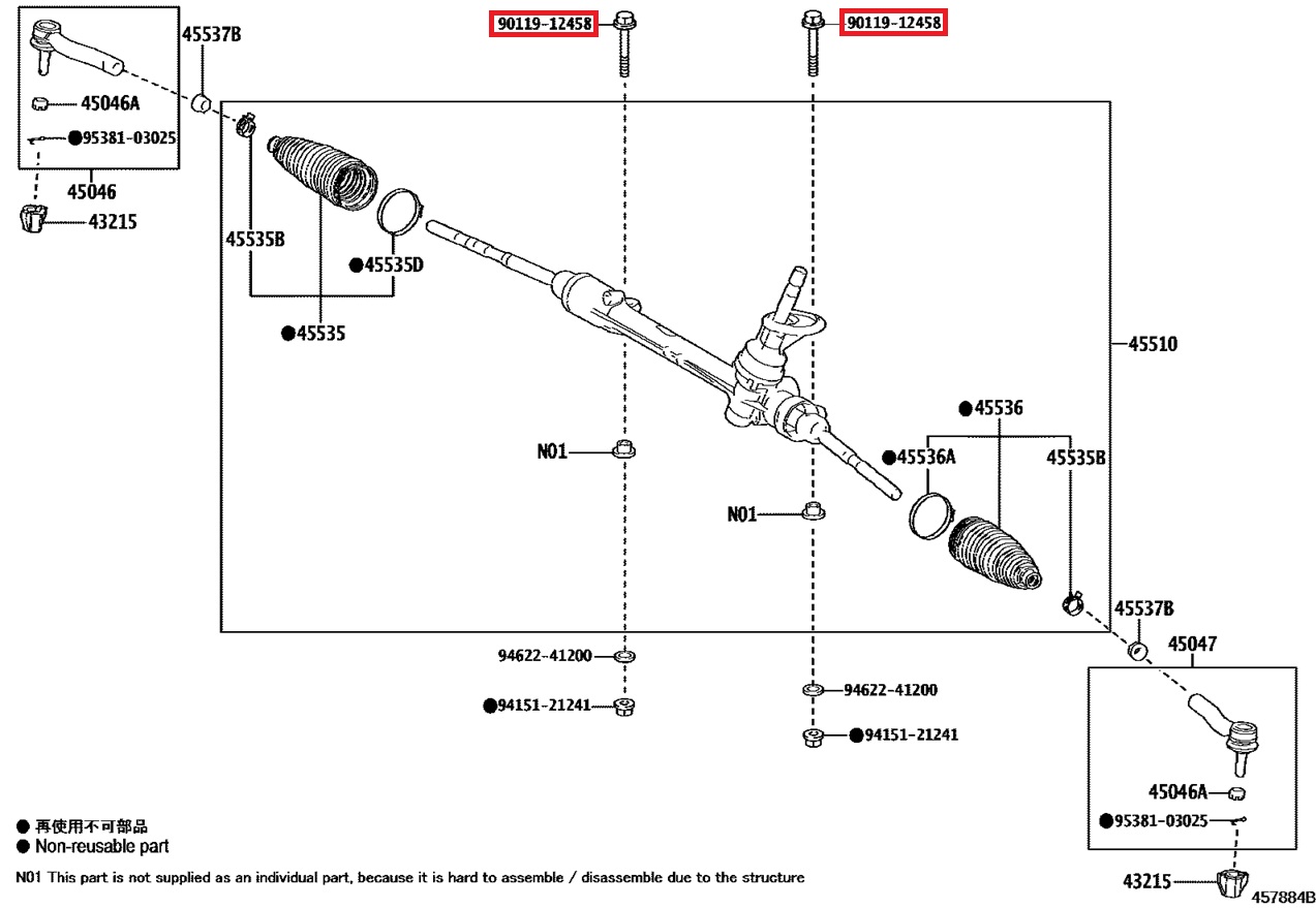90119-12458 Vis crémaillère direction GR Yaris