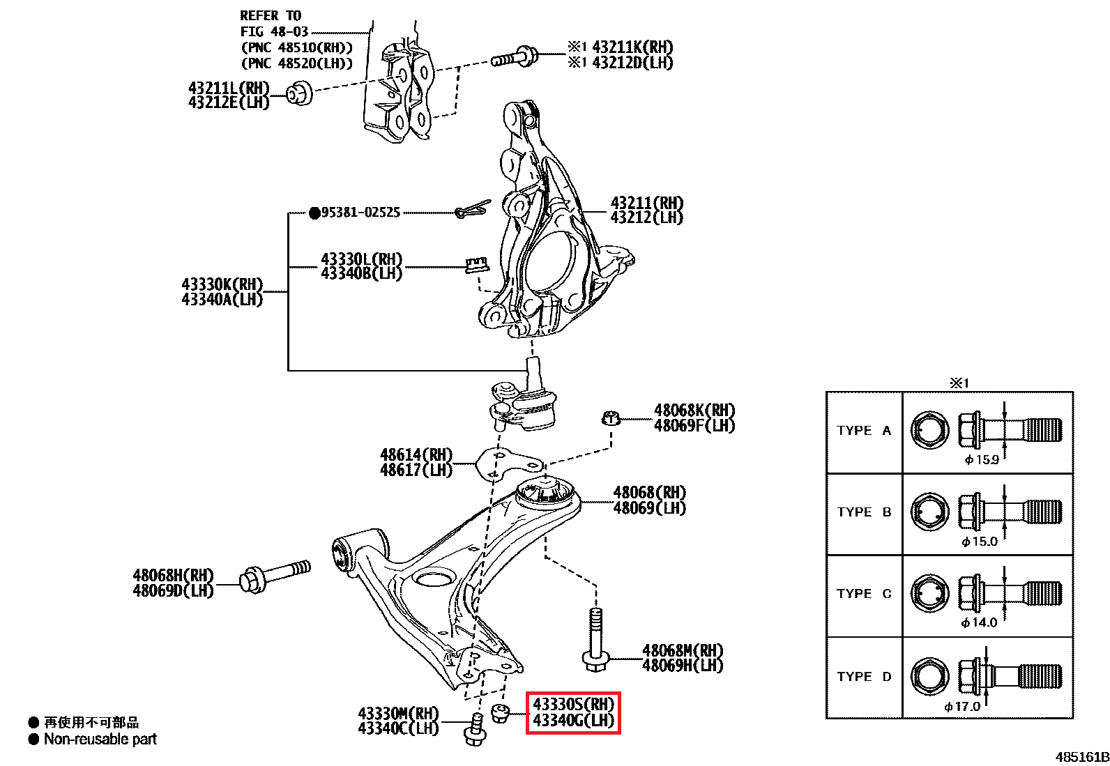 90178-12019 Ecrou rotule inférieure / triangle avant GR Yaris (43330S 43340G)