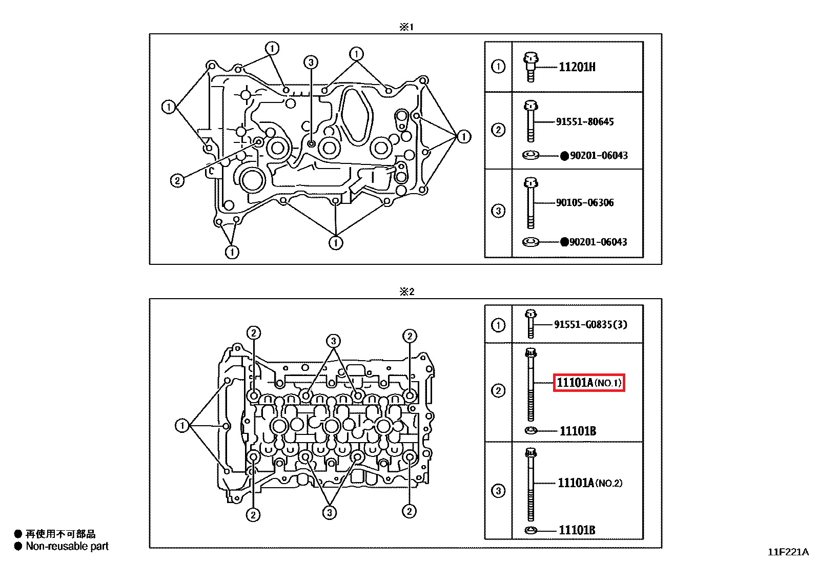 Voir aussi la vis 11101A NO.2 nécessaire au serrage de la culasse.
