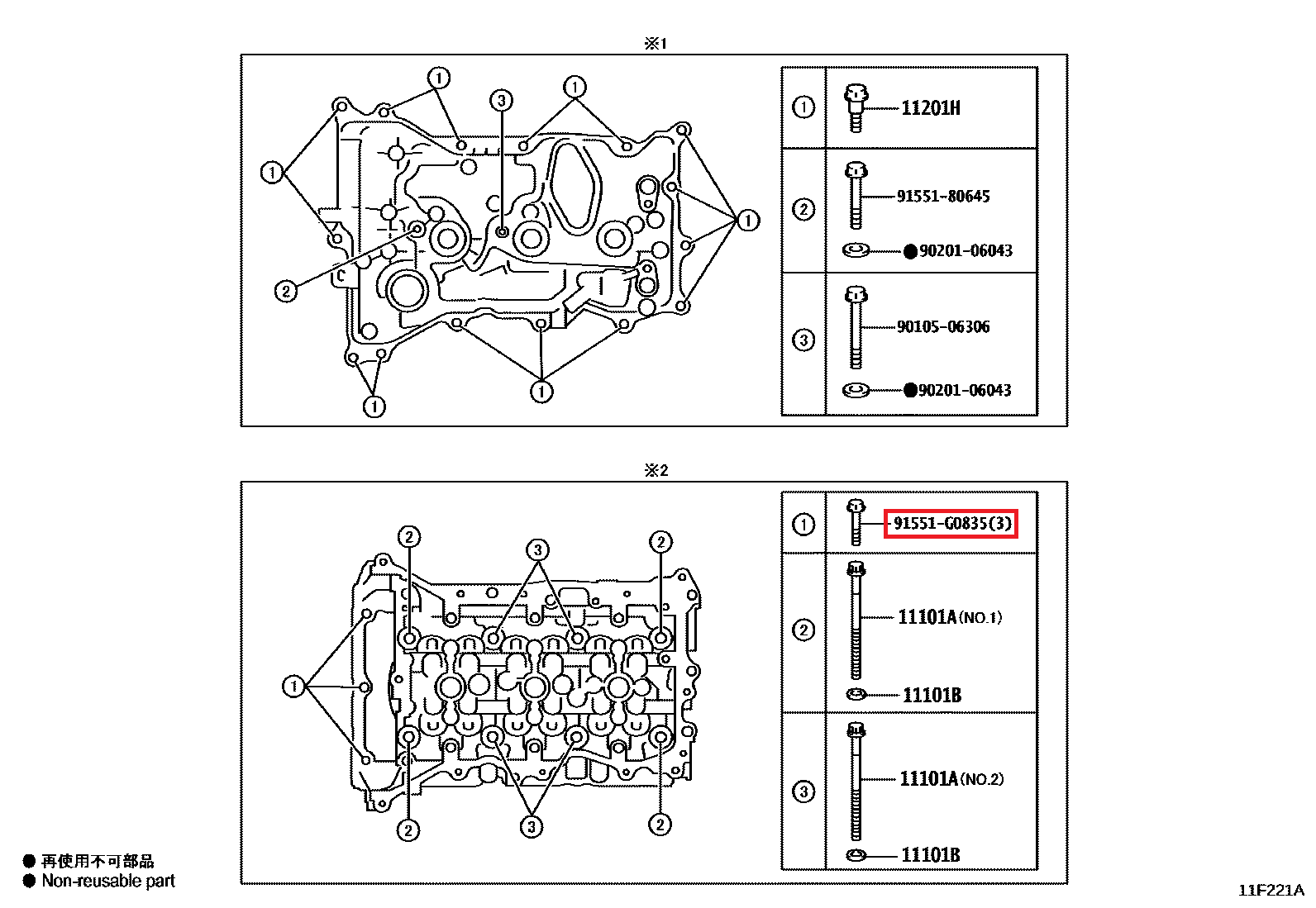 Vis de culasse, côte distribution de GR Yaris GEN1 et 2.
