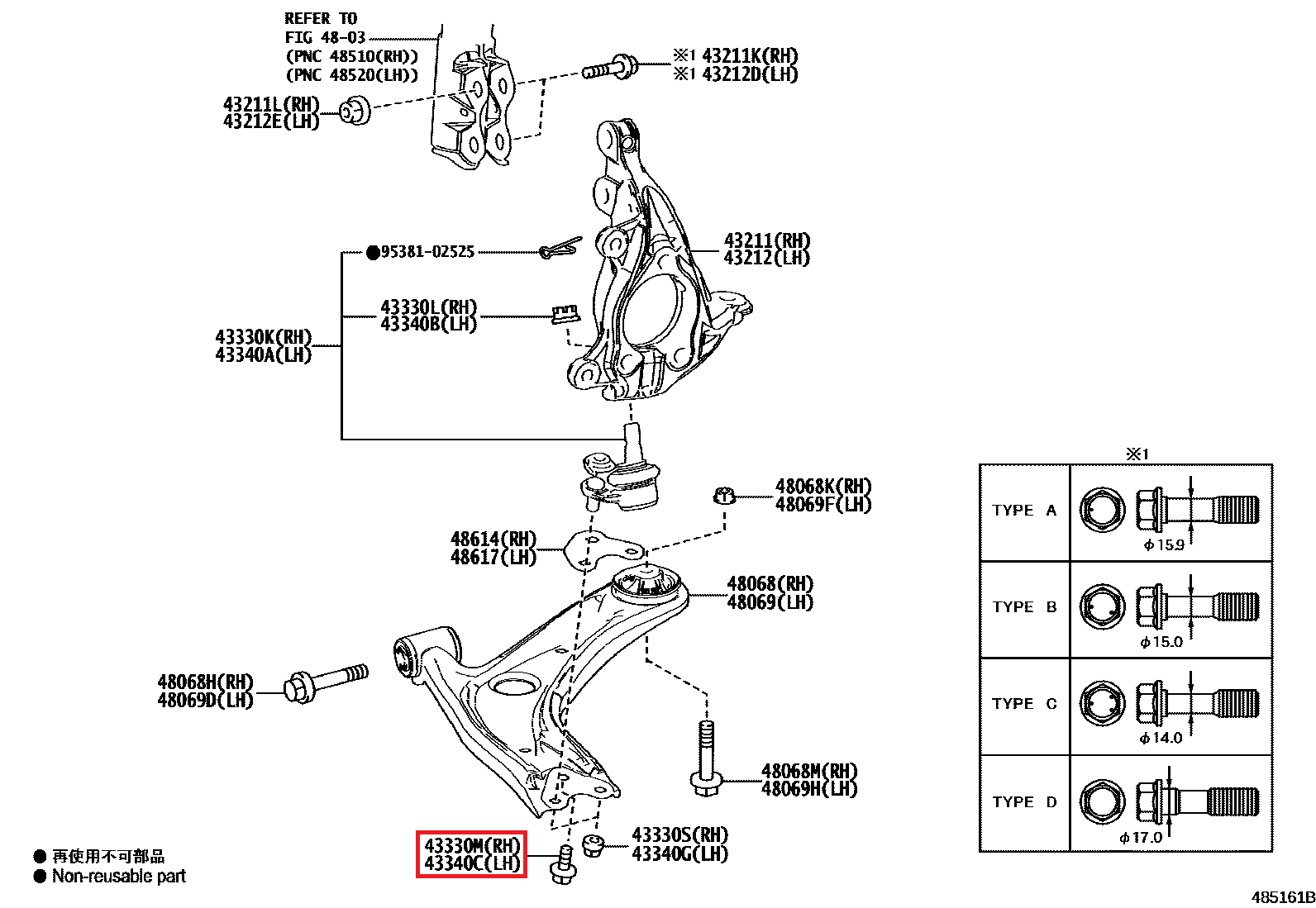 91552-L1225 Vis rotule inférieure / triangle avant GR Yaris (43330M 43340C)