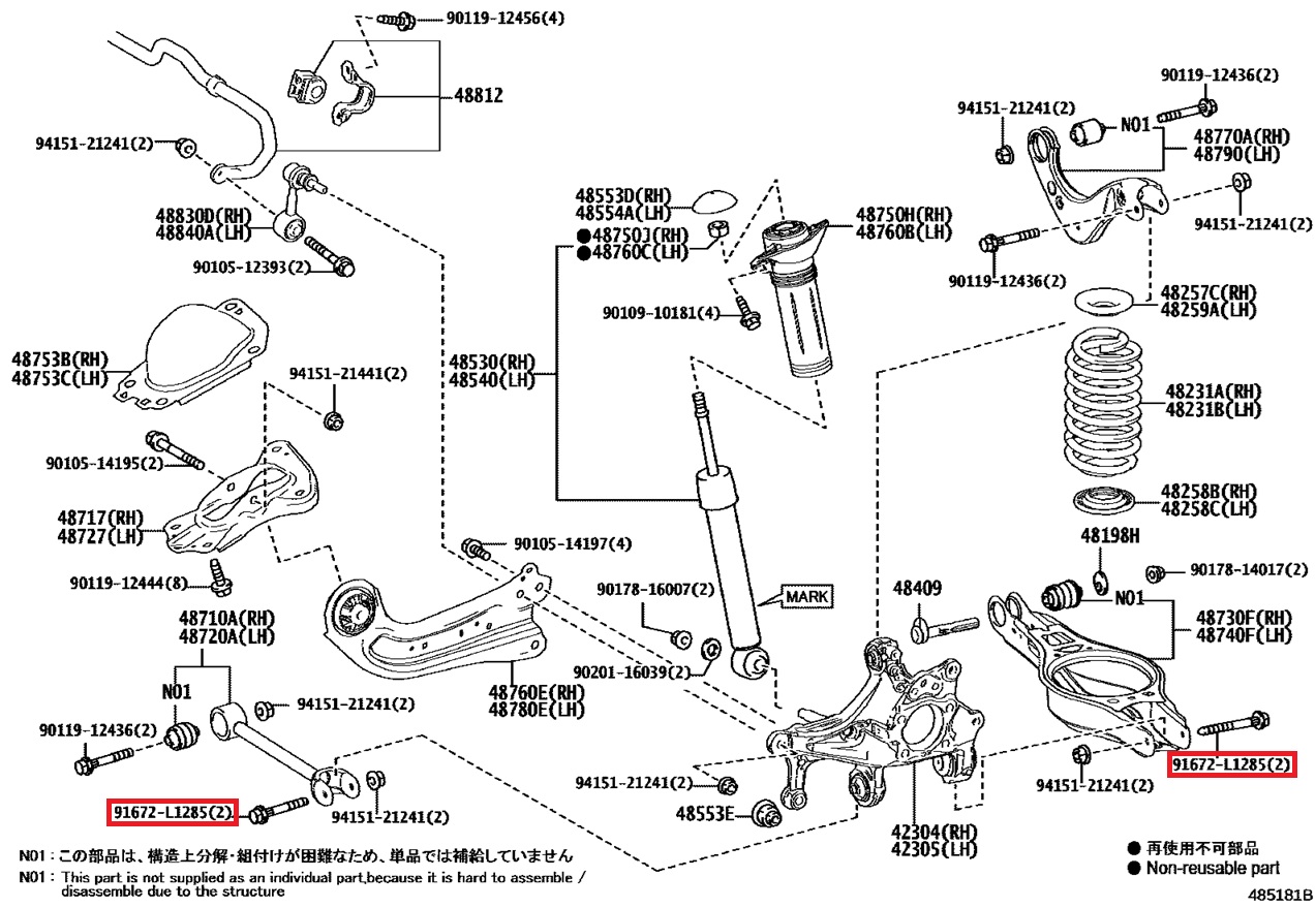 91672-L1285 Vis bras suspension arrière GR Yaris