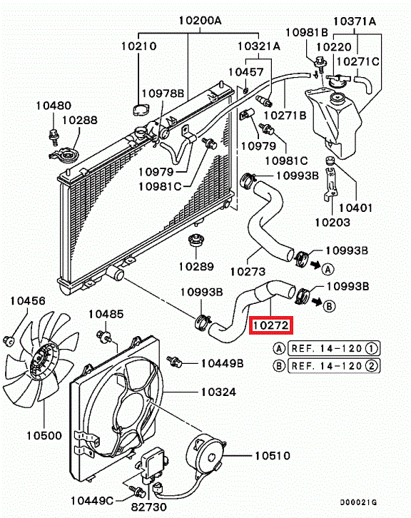MR464622 Durite inférieure radiateur, refroidissement moteur E7