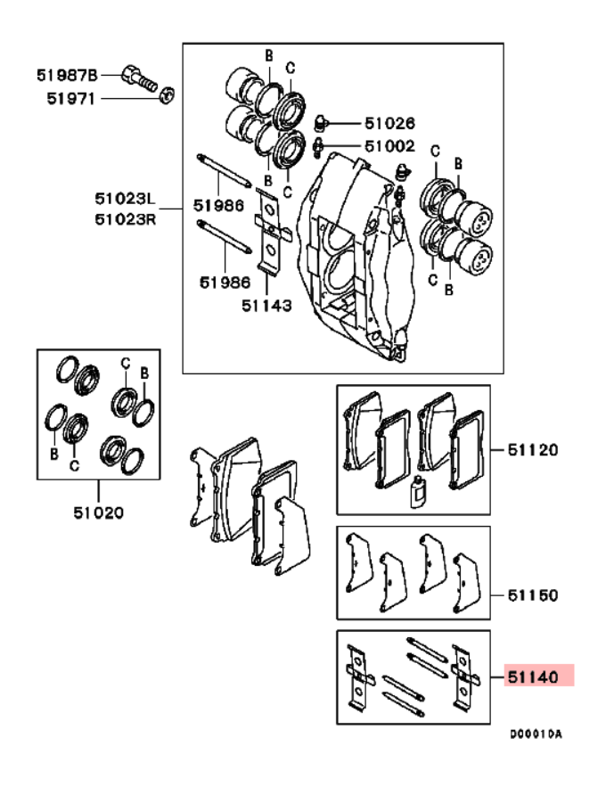 MR475935 Kit fixation plaquettes étrier frein avant Brembo 4 pistons E6-9